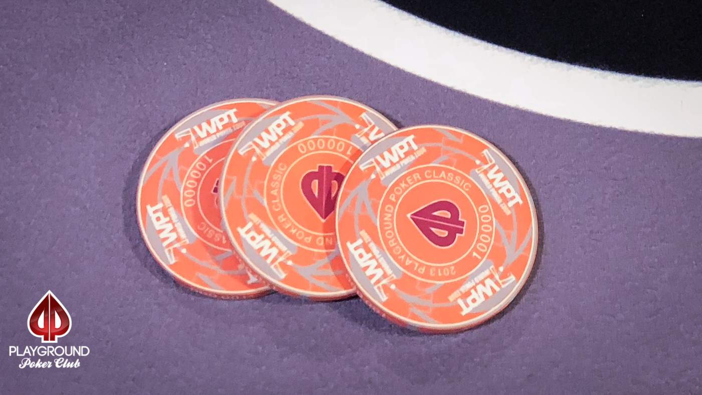 In addition, Tournament staff introduced the orange 100K chip into play during the break as well. A full stack of those is 2M in chips! No one’s close to have so much yet, but it won’t be long…