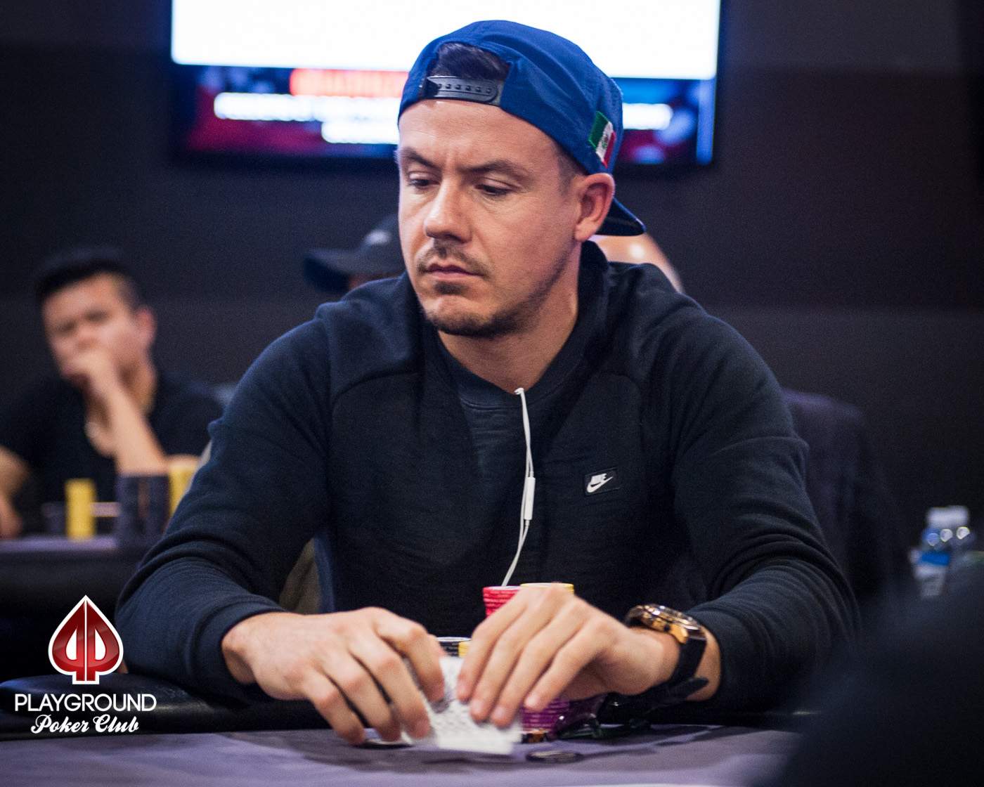Before that hand, on the other table, Ruben Perceval crippled Jeremy Lyons when he doubled through him with