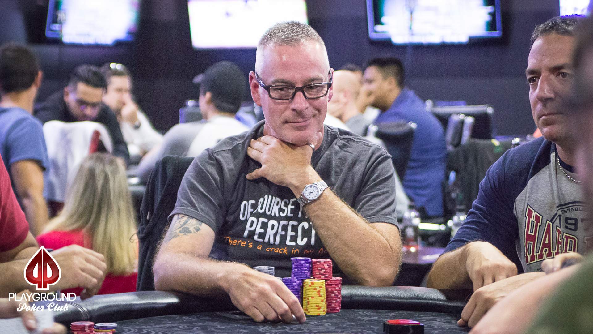 Day 1A of the Playground 200 just came to a close. 222 entries were accounted for, a record-breaking Day 1A in this tournament. Except for one wild table, the night started pretty slow. With a 25K stack to enjoy and 30-minute levels to work with, participants were playing the long game.