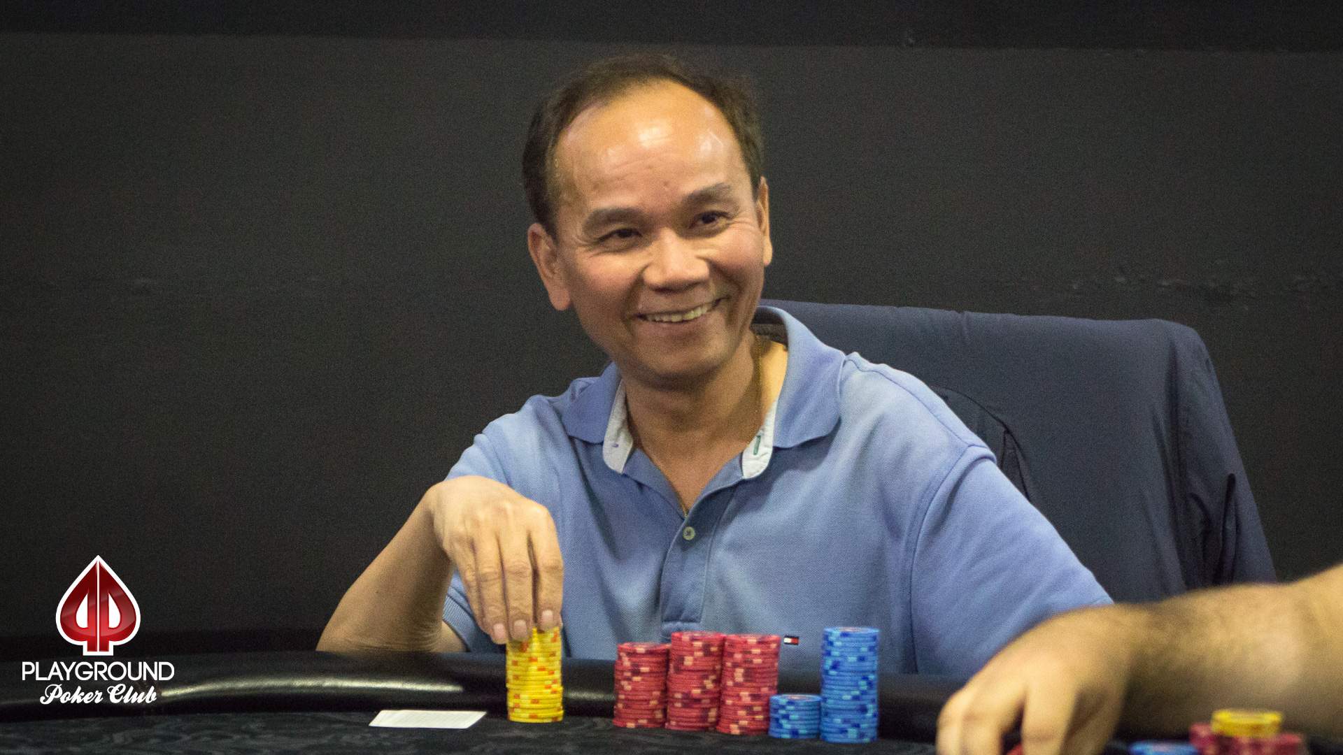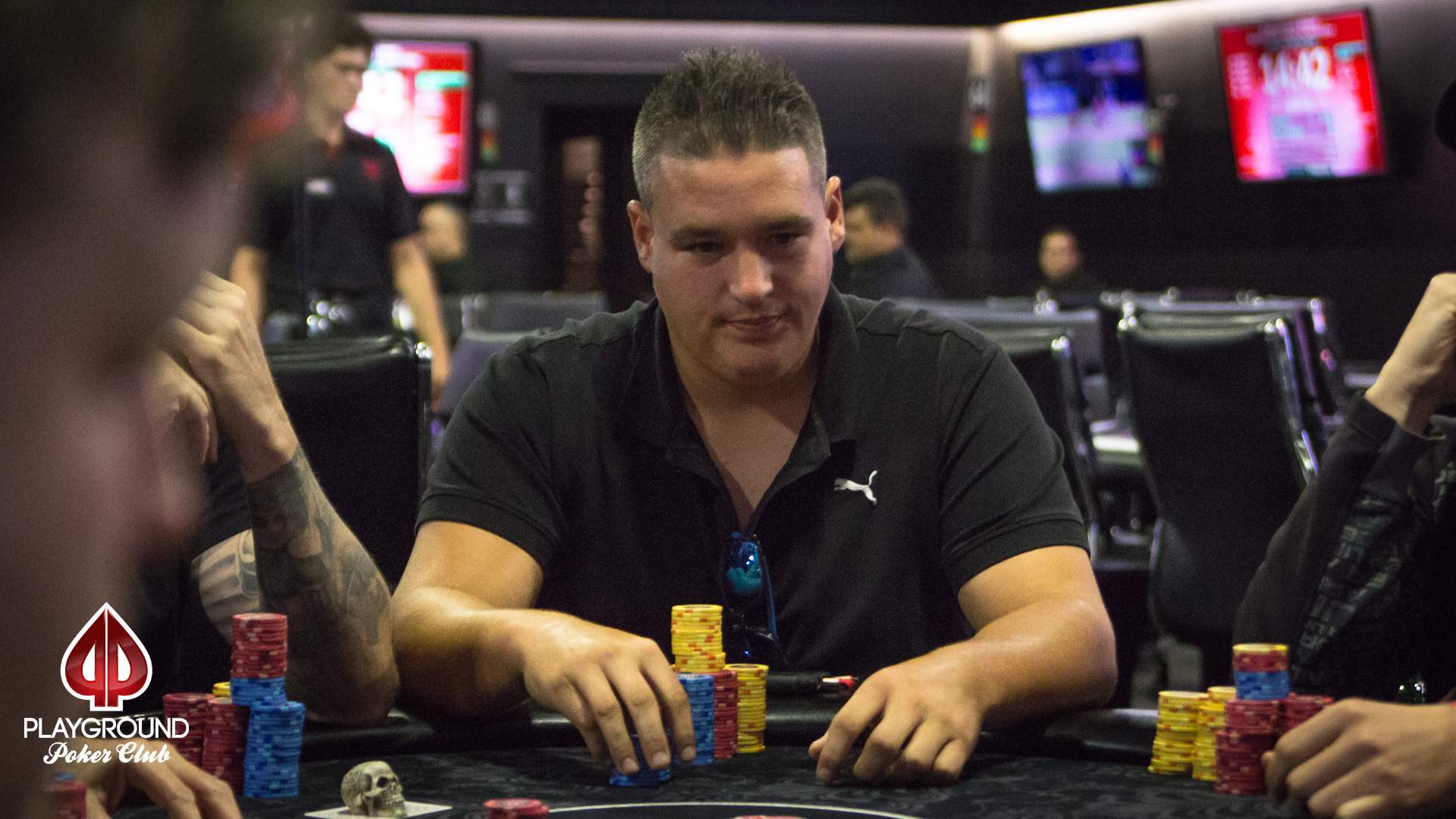 After 10 levels of play in Day 2 of the Playground 200, 21 players still had chips. 7 of them will start Day 3 as millionaires, and are listed below. Co Tran had a great last lap, and bagged 1,470,000 chips, the leading stack. Sébastien “Seabass” Drolet-Poitras follows with 1,325,000. Dave Jeanneau-Cyr missed the million mark by a hair, as he finished with 990K.