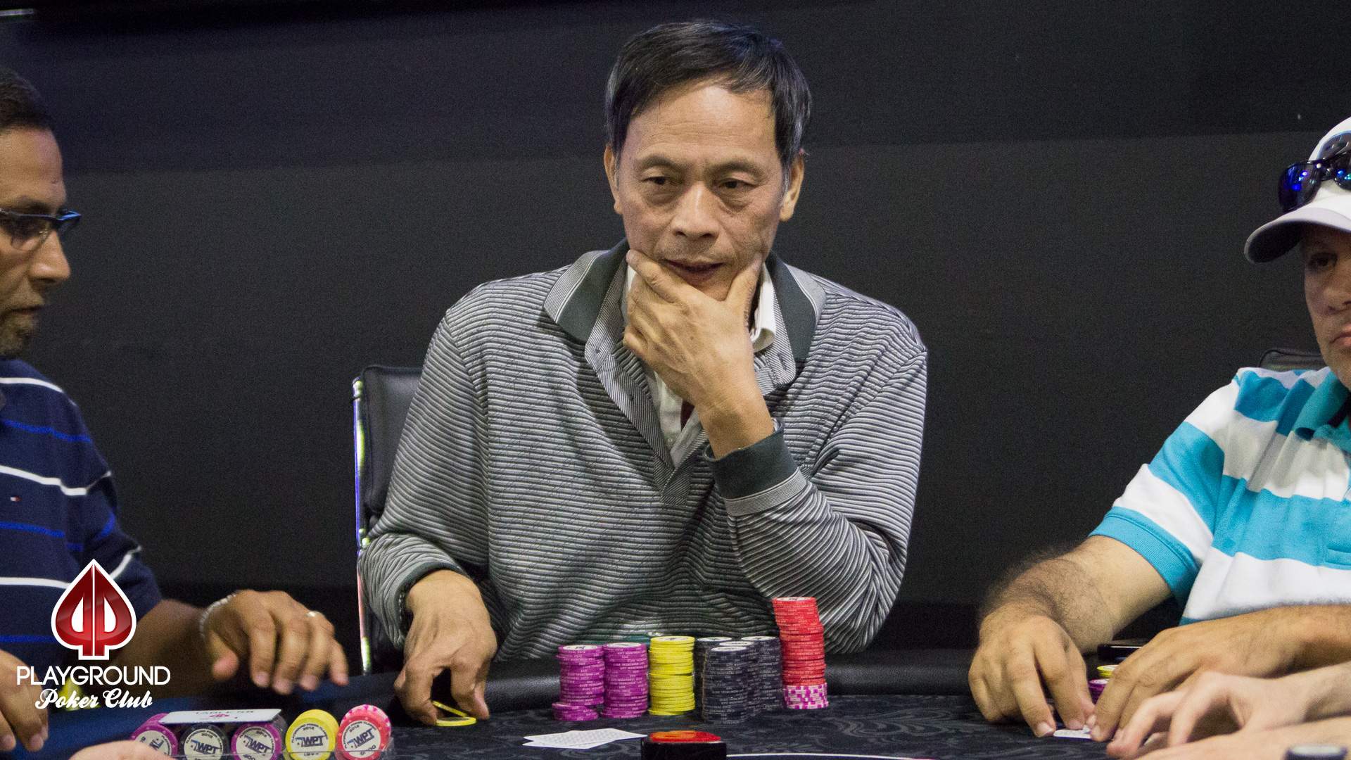 board, Lam moved all in for slightly more than 80K. After asking for the count, Andre P splashed a pile of 5K chips in the middle, and Lam figured he was beat. “Just one heart” Lam said as he tabled his
