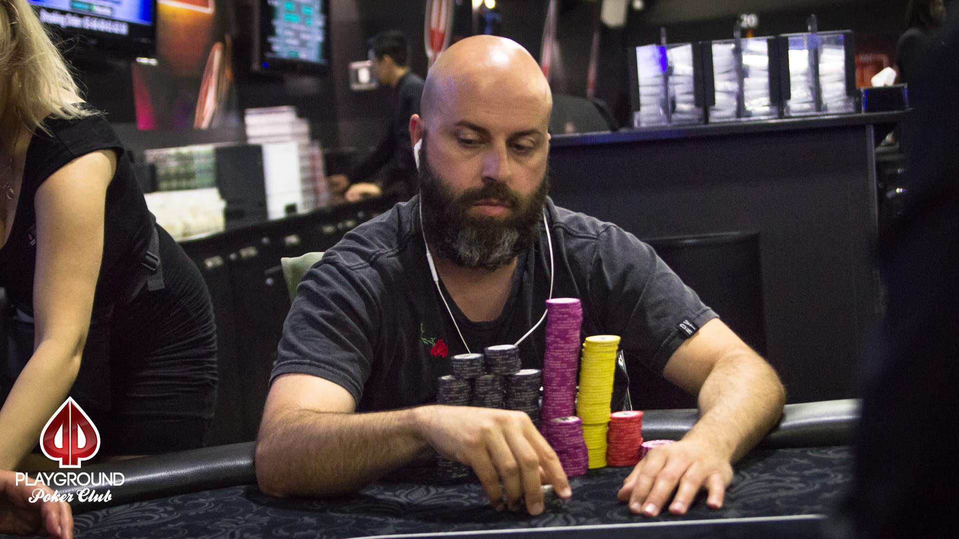 After 12 levels of play, some players have managed to collect an impressive pile of bounties and quite a bit of chips. Réjean Grenier sits behind a wall of stacks, and his 251,000 chips are second only to Nikola Isaev, who’s working with 269,000.
