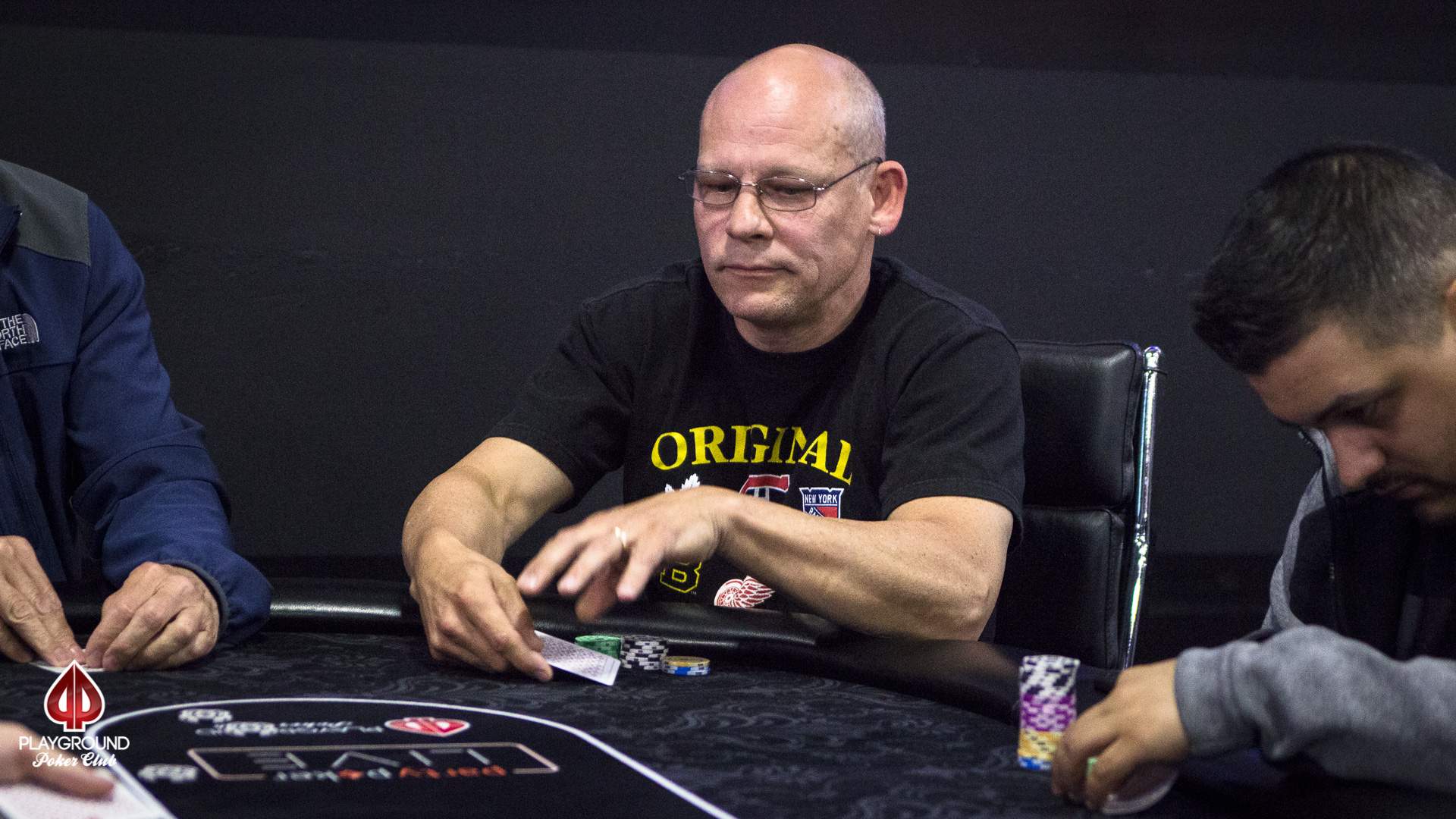 The players in Event #1 are now in the money as the bubble burst just seconds ago on table 58. This leaves 11 players at the tables, each of whom will earn at least $240 today – and possibly much more!