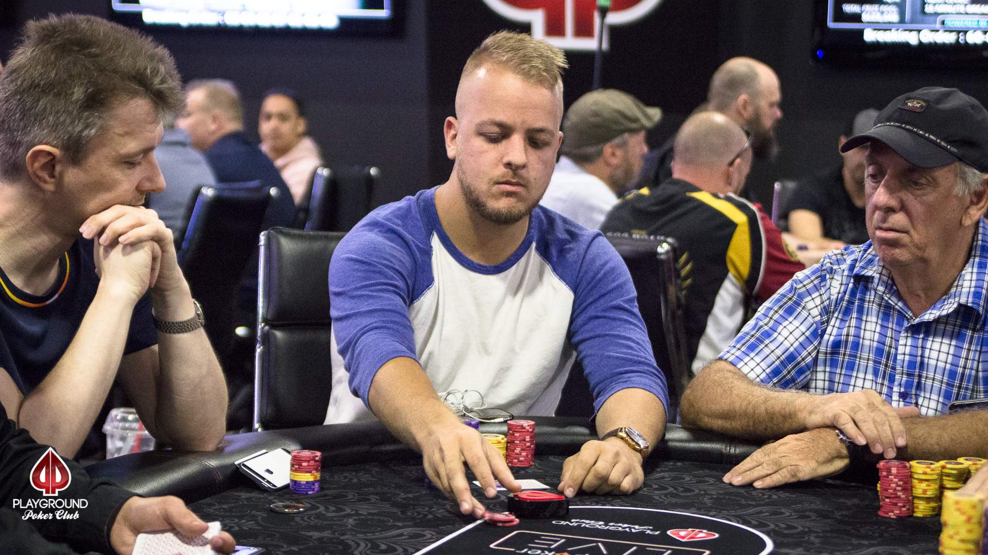 When 60 places in a tournament pay, that means that the player in 61st place is the bubble player – the last player to go home empty handed. Play in the Strangers in the Night event was down to 61 players remaining when play went hand-for-hand – something done to ensure everything is fair and equitable during a critical moment in an event.