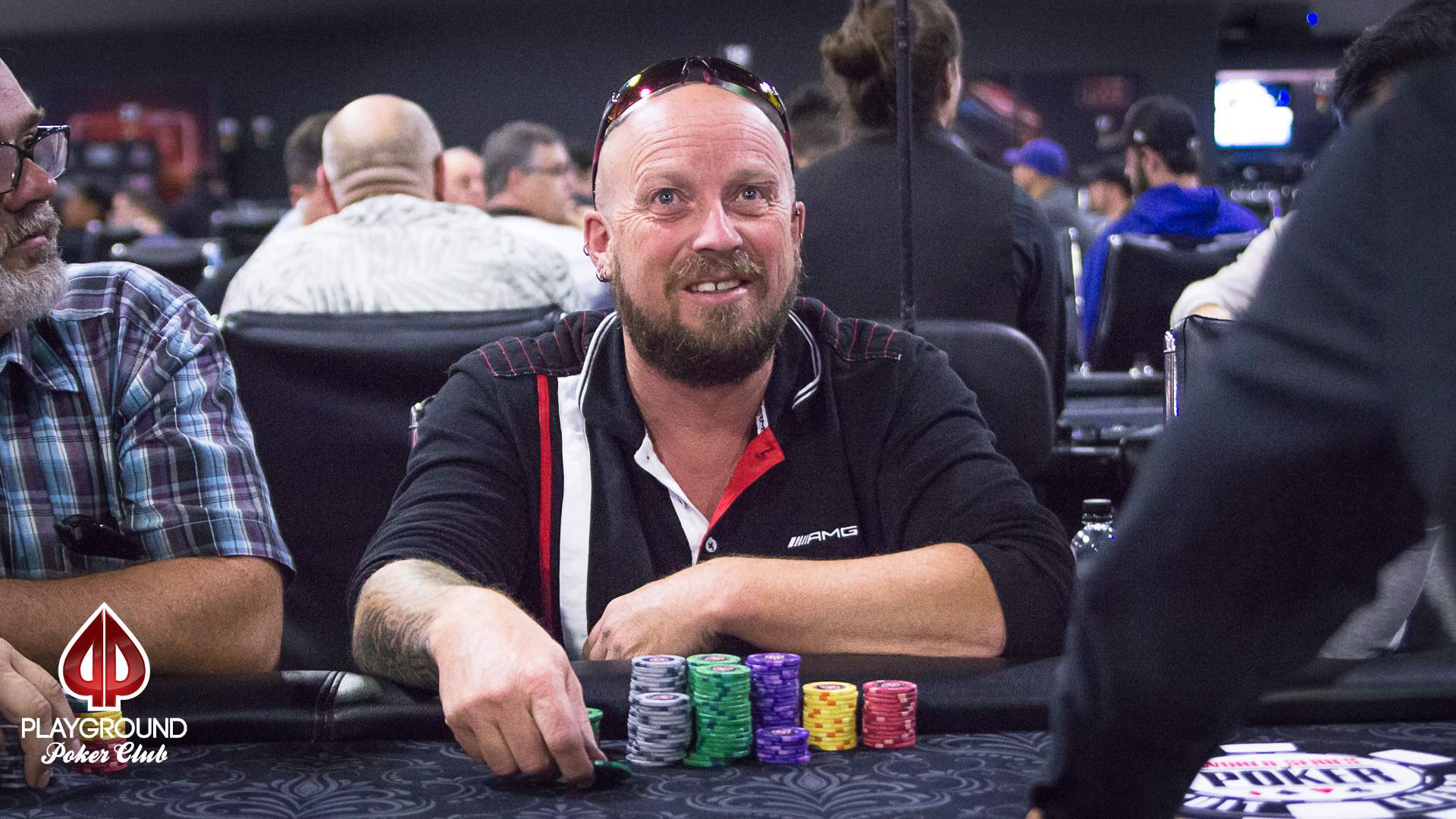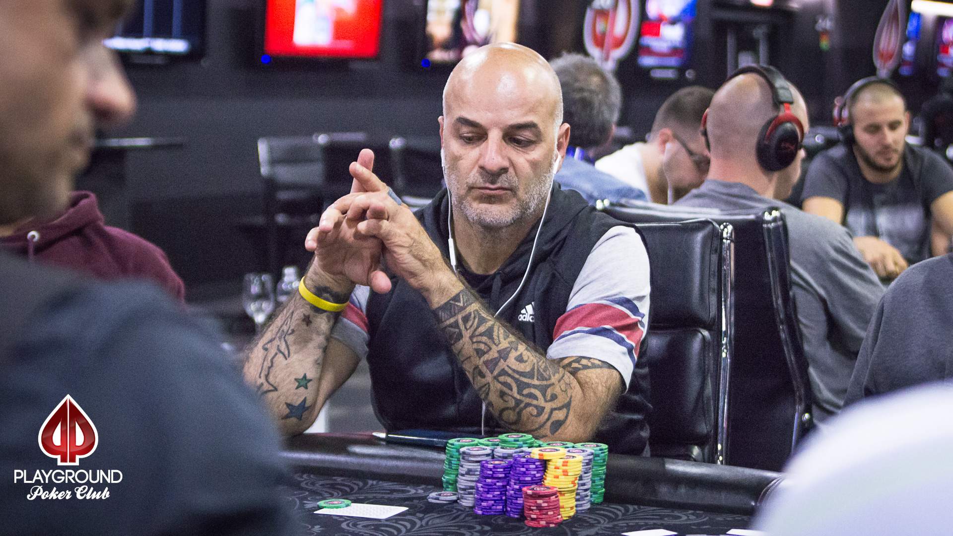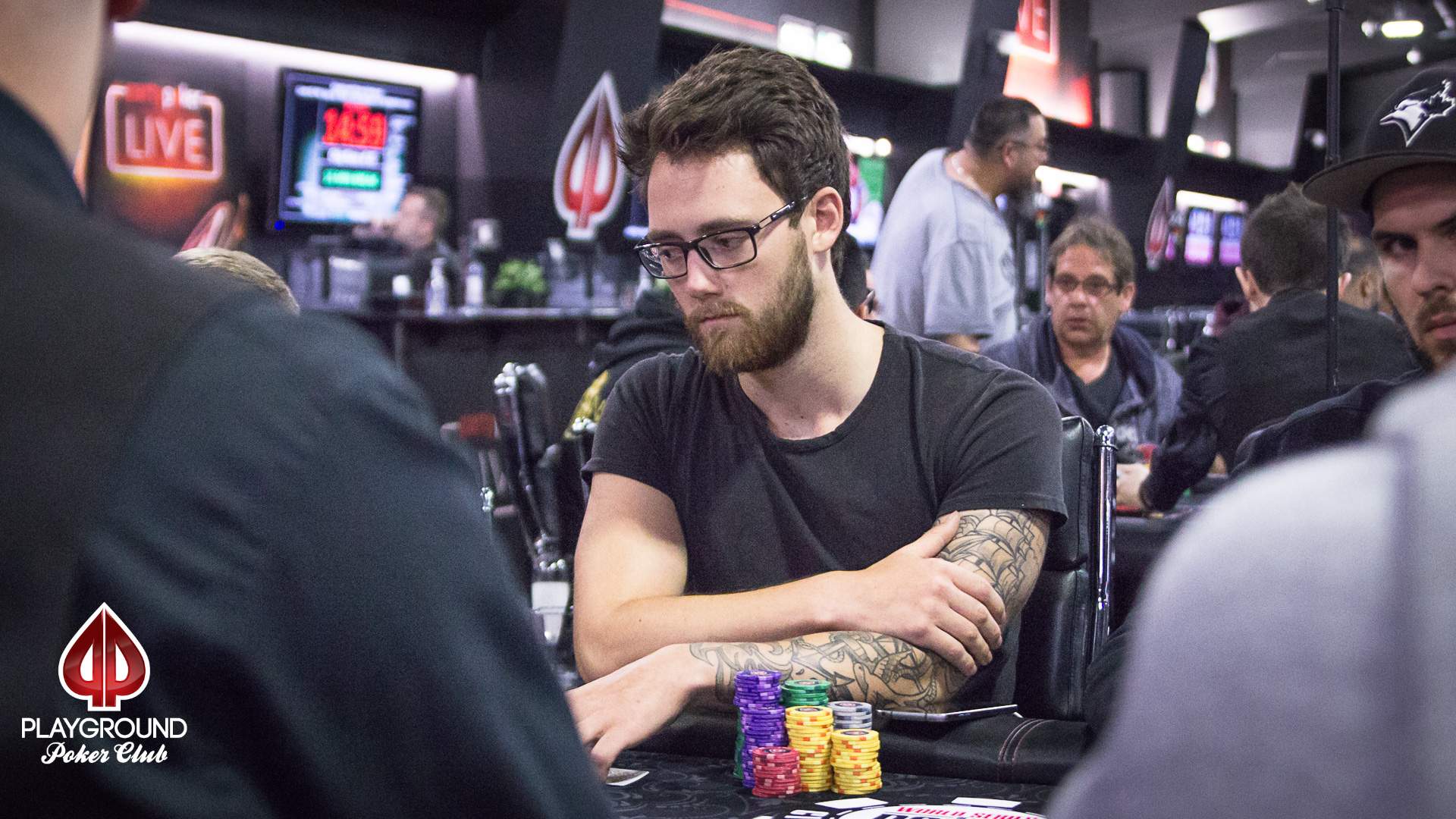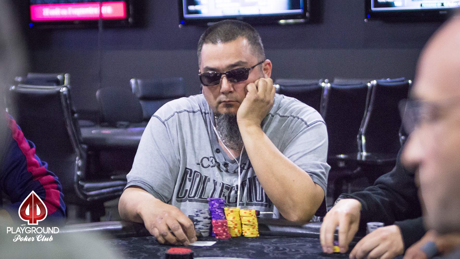 Maurice Simard had a different path. He kept himself slightly above average for a while, until he won a 4-way all-in pot with aces, some 35 minutes before the end. He bagged 231,500 chips, a top 5 stack. What a nice way to get into Day 2!