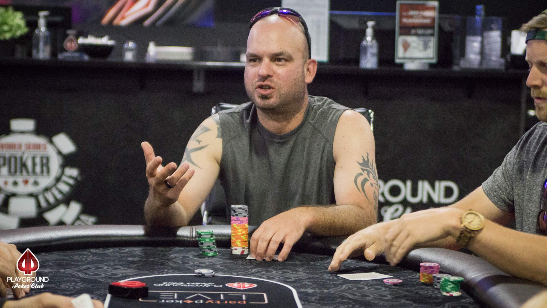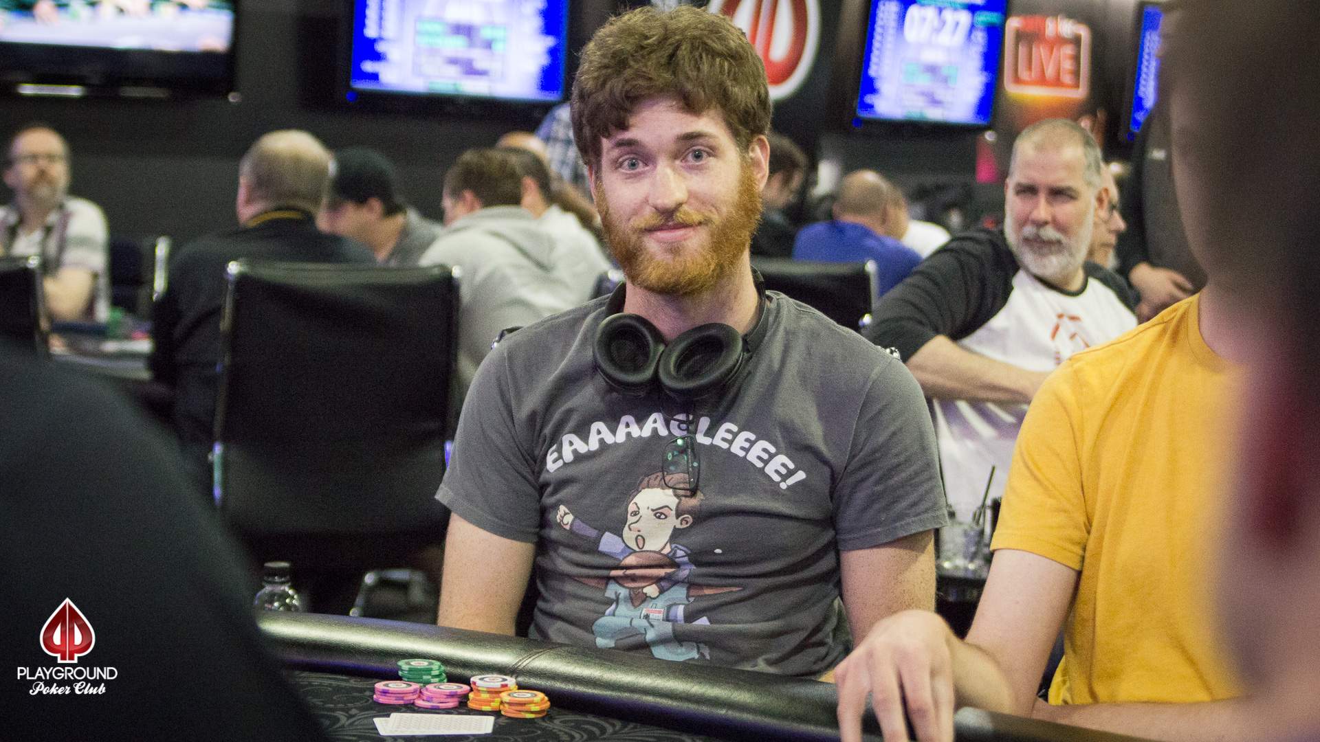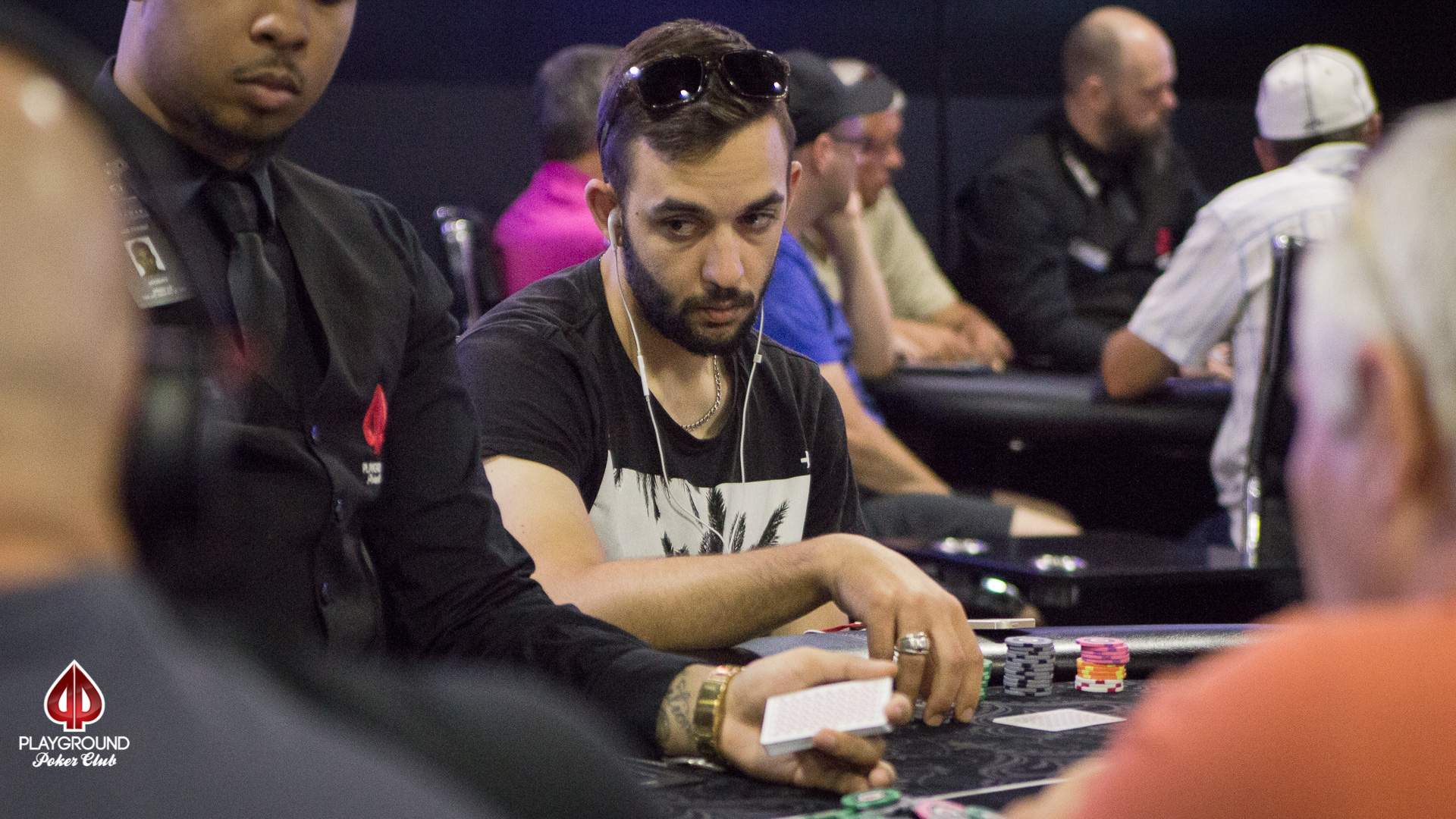 The players in today’s Deepstack Turbo have now played through 10 levels and during the last break we were able to establish the first leaderboard in the tournament. No one has managed to build a hugely dominant stack, but there are 4 players who already have at least 3x the starting stack. Even during the current level of play, however, there has been considerable movement (i.e., big changes to the leaders) and that should continue for most of the rest of the day.