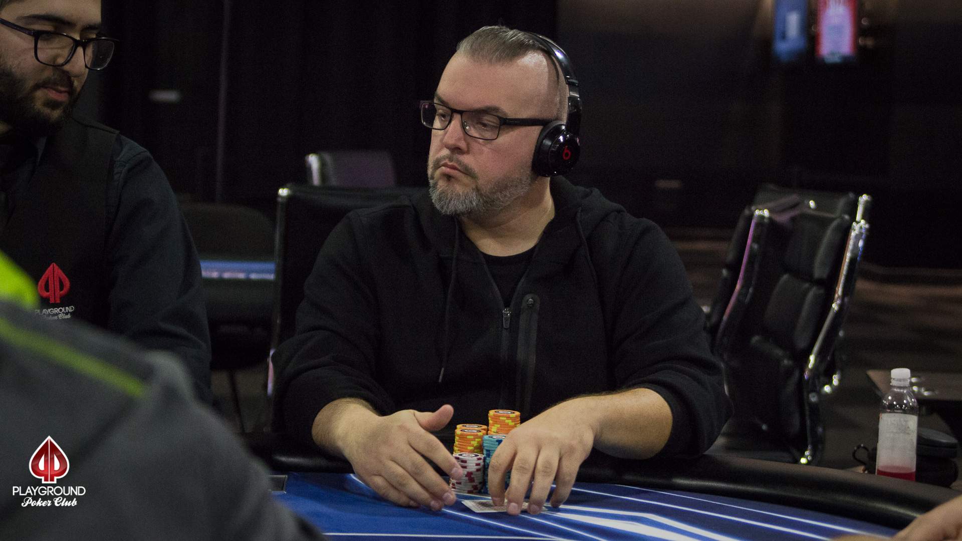 With 9 players still remaining, the players in Event #7 went on a break and we took the opportunity to get full chip counts for all 9 players. Danny Boudreau has taken a narrow lead on Michel Patenaude, and both players have a significant chip edge on the remaining field.