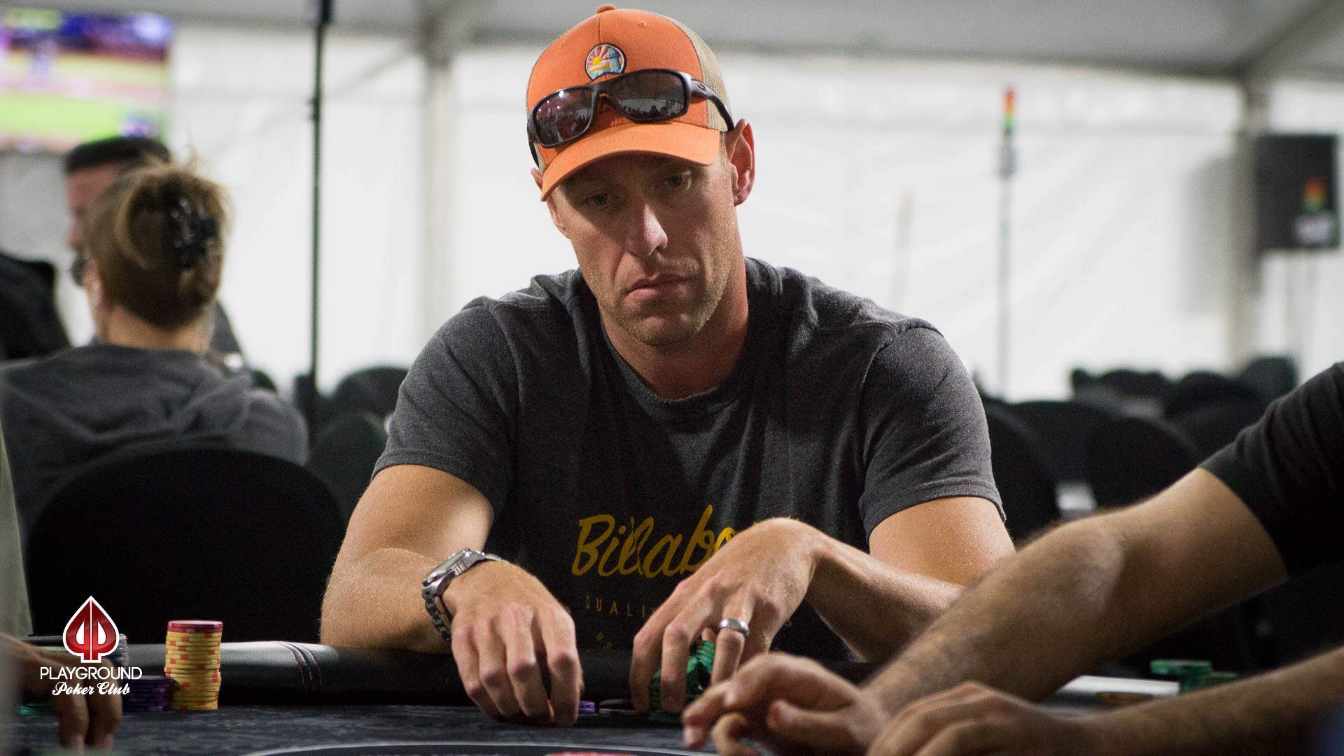 The tournament director announced that it would be the last four hands a few minutes after the 4th table broke and the players settled in on the last 3 tables. One player was eliminated and the last 29 players are putting their chips in the bags. They are now registered for Day 2 on Monday, August 27th at noon.