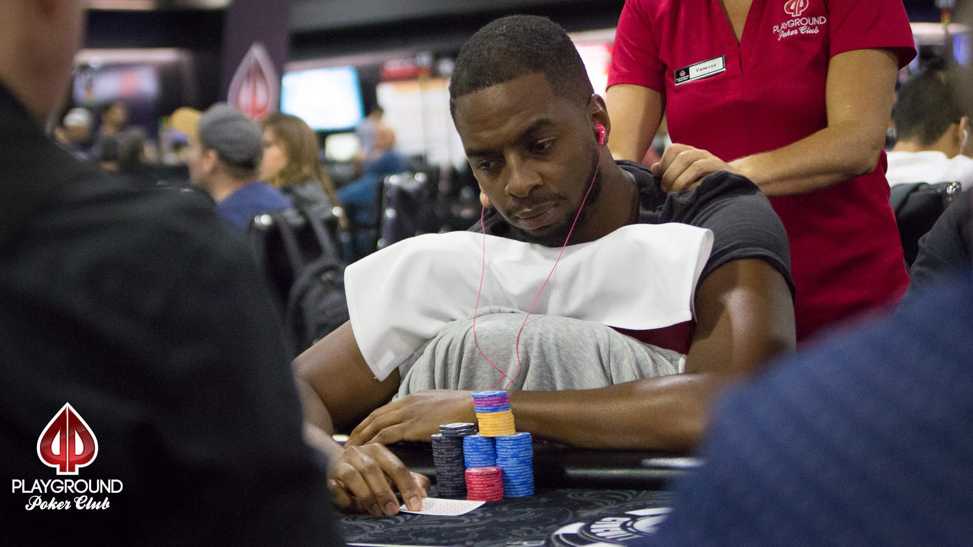 The stacks remain deep, as the chip average still provides slightly more than 50 big blinds. The remaining field is full of experienced and dangerous players, but they all trail our new chip leader, Jason James, by a fair margin.